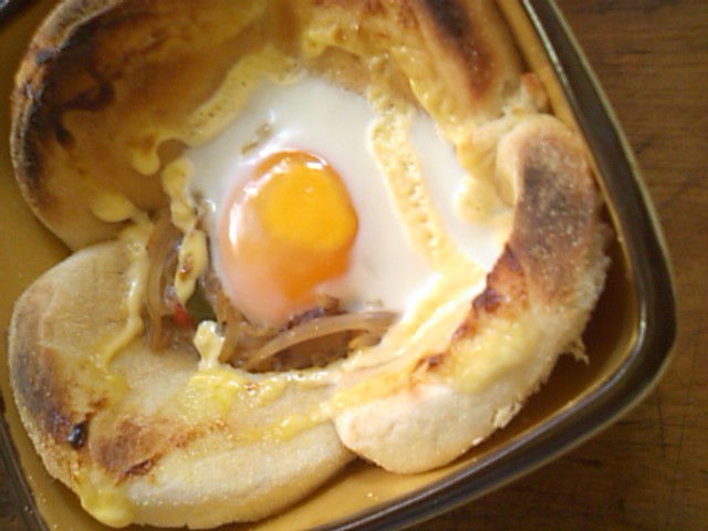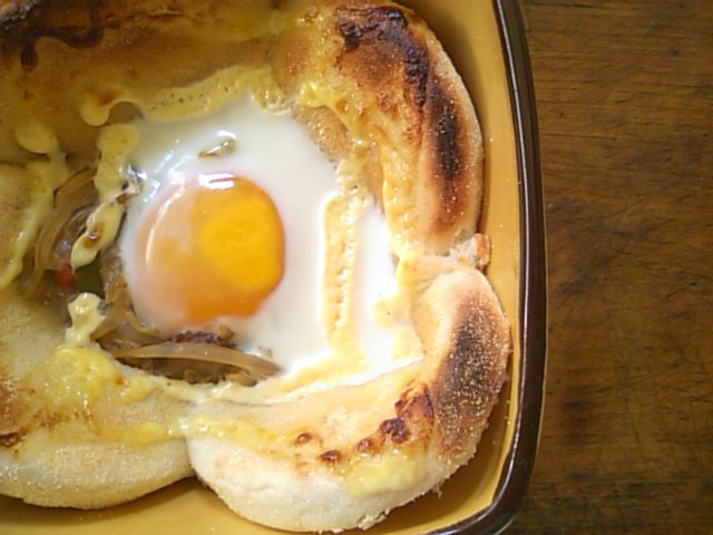 イングリッシュマフィンと卵をのっけて、